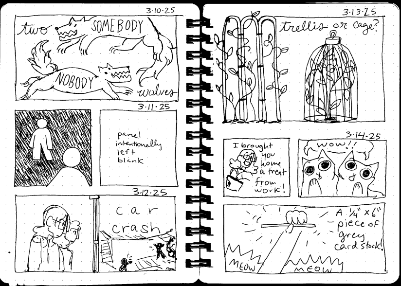 In other news, if you are reading this on the day it posts, I’ll be tabling this upcoming Saturday at the first Comic Arts Maine Portland. It’ll be my first time selling my five years of architecture school comic in person & I recently compiled some comic strips into a small book that I will also have there. I am nervous but it should be fineeee
